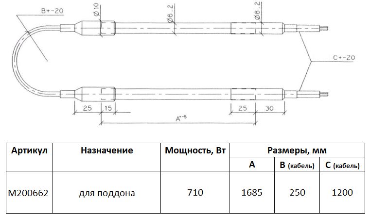 ТЭН поддона воздухоохладителя ThermoKey M200662 (0,71 кВт, 1685 мм, 6,2 мм)
