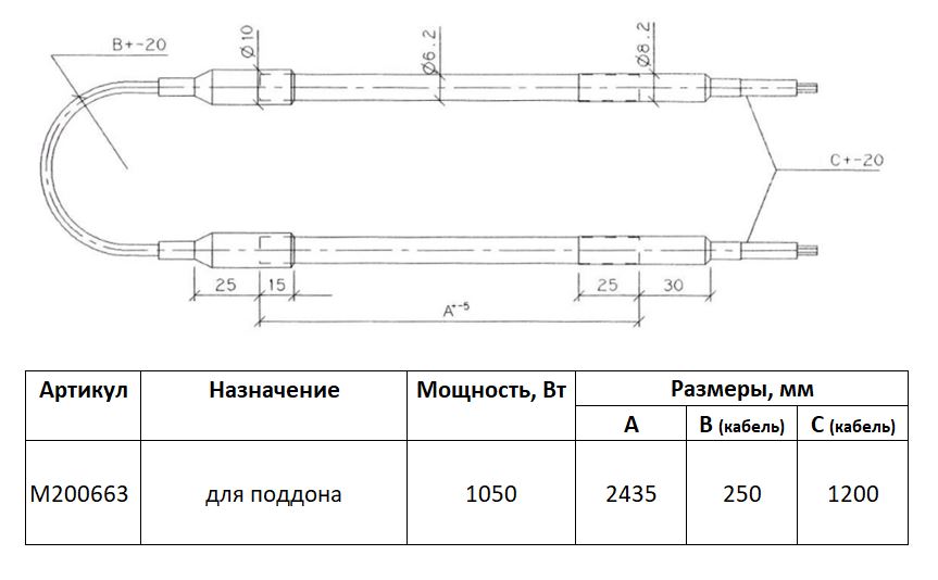 ТЭН поддона воздухоохладителя ThermoKey M200663 (1,05 кВт, 2435 мм, 6,2 мм)