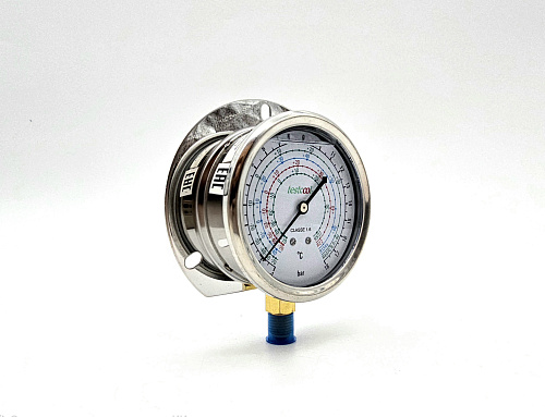 Манометр с глицерином, 80 мм, низкое давление (LP), 1/4"SAE снизу, R507/R22/R134a/407c (testcool)