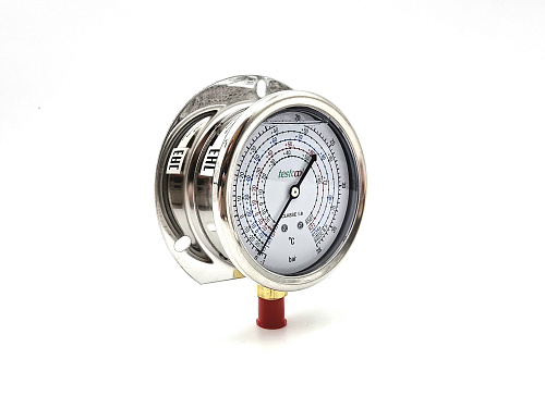 Манометр с глицерином, 80 мм, высокое давление (HP), 1/4"SAE снизу, R507/R22/R134a/407c (testcool)