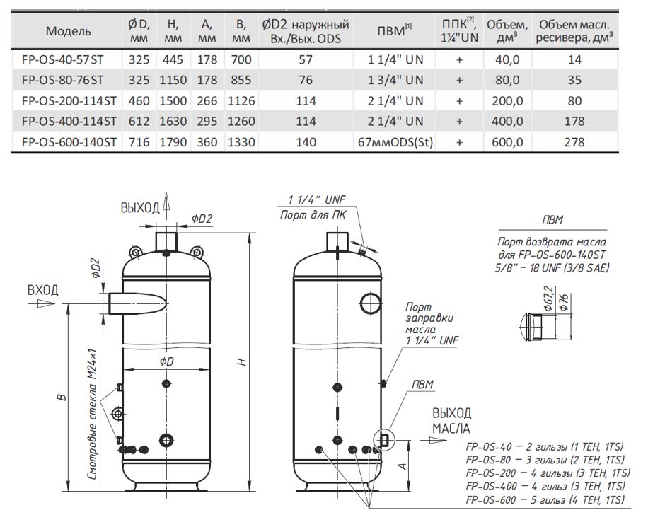 Элементы корпуса и внутренних перегородок выполнены из материалов, совместимых с промышленными хладагентами и компрессорными маслами, с антикоррозионной обработкой контактных поверхностей и использованием уплотнений, стойких к агрессивным средам; сварные соединения и присоединительные патрубки рассчитаны на эксплуатационные условия холодильных систем.