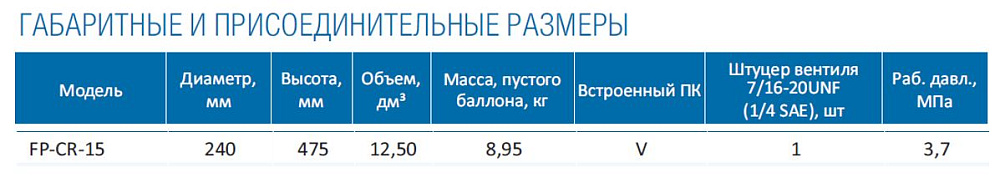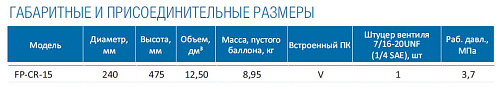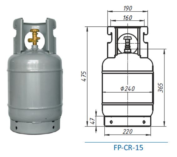 Многоразовый баллон FP-CR-15 производства Frigopoint предназначен для многократного хранения и транспортировки фреоновых хладагентов типов ХФУ, ГХФУ и ГФУ; изделие сопровождается паспортом и изготовлено с соблюдением требований Технического регламента ТР ТС 032/2013.
