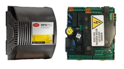 Контроллер серии MPXPRO фирмы CAREL представляет собой модуль управления для холодильных и климатических систем с интегрированным блоком питания, рассчитанным на работу от широкого диапазона переменного напряжения (порядка 115–230 В). В составе модуля предусмотрено пять релейных выходов, предназначенных для последовательного или параллельного коммутирования исполнительных устройств нагрузки.