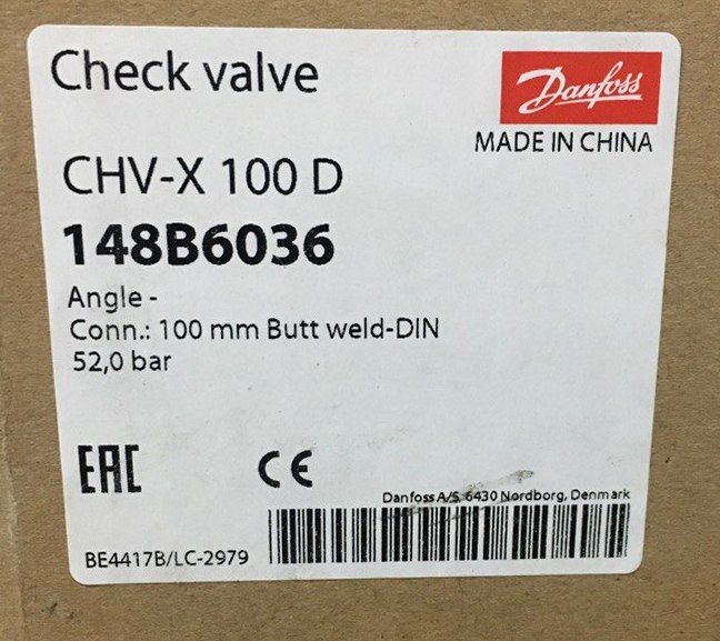 Клапан обратный Danfoss CHV-X 100 D, ANG, 100 мм, пайка DIN, 148B6036
