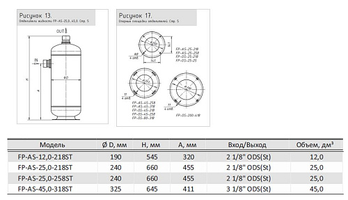 Отделитель жидкости FP-AS-45,0-318 ST производства Frigopoint имеет номинальный внутренний объём 45,0 дм³ и рассчитан на эксплуатацию при максимальном рабочем давлении до 28 бар; подсоединение к трубопроводу выполнено в виде пайки по наружному диаметру 3 1/8" ODS.
