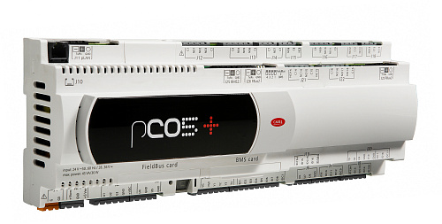 В устройстве применена цифровая обработка сигналов на базе микропроцессора семейства pCO, а коммутация исполнительных цепей реализована с помощью твердотельных реле, исключающих механический износ. Интерфейс BMS выполнен без опторазвязки, что предполагает прямую электрическую стыковку сигналов, интерфейс FB обеспечивает обмен данными с внешними системами управления.