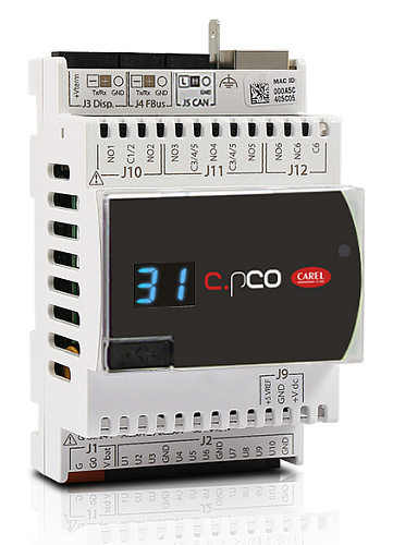 Применение контроллера ориентировано на системы холодильной и климатической автоматики в торговых и логистических комплексах, пищевой промышленности и других объектах, где требуется управление электронными ТРВ и сетевое взаимодействие с верхнеуровневыми системами через Ethernet, Fieldbus или CAN; устройство совместимо с серией приводов CAREL EXV и с расширительными платами семейства c.pCO.