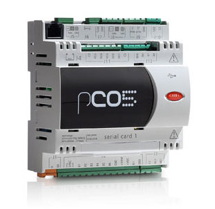 Контроллер CAREL pCO Compact выполнен в конфигурации с семью релейными выходами и двумя аналоговыми выходами, имеет интерфейс USB и встроенную флэш‑память для хранения прикладного программного обеспечения и управляющей логики. Устройство рассчитано на исполнение управляющей программы встройке и обеспечивает присоединение внешних датчиков и исполнительных устройств через набор клемм для коммутации компрессоров, вентиляторов и других компонентов холодильных и климатических систем.