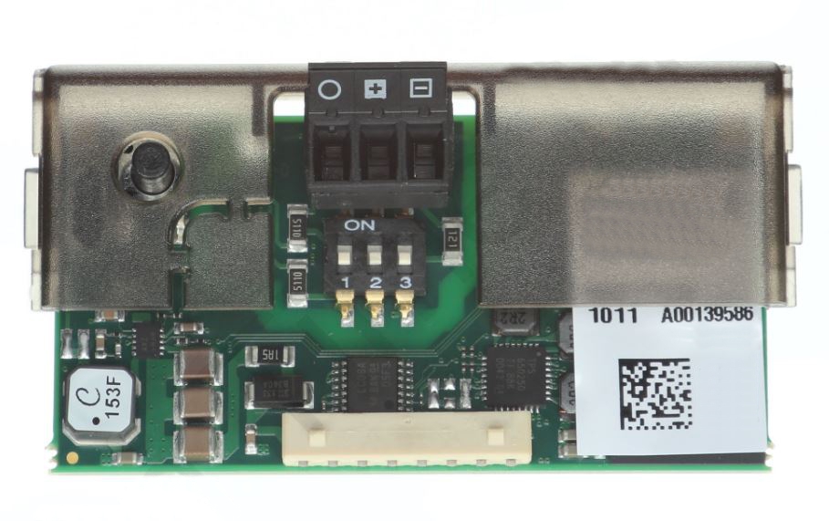 Модуль выполнен в виде платы расширения для установки в соответствующий слот контроллера, с контактным интерфейсом для электрического подключения к базе устройства и внешними клеммами для подключения дифференциальной пары шины RS-485; конструкция рассчитана на работу внутри электрического шкафа вместе с контроллером без наличия отдельных органов управления на модуле.