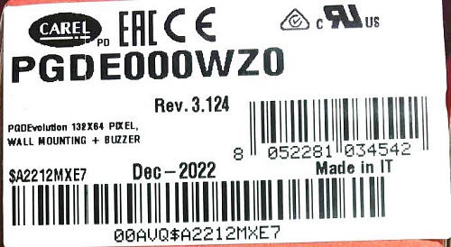 ДИСПЛЕЙ CAREL PGD EVOLUTION 132X64 PIXEL, WALL MOUNTING + BUZZER