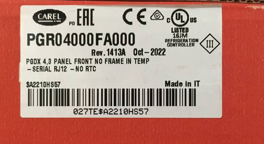 ТЕРМИНАЛ CAREL PGDX 4,3" RUNTIME, БЕЗ ВНЕШНЕЙ РАМКИ, МОНТАЖ В ПАНЕЛЬ СНАРУЖИ, ДИАПАЗОН РАБОЧИХ ТЕМПЕРАТУР 0...50 °C, USB