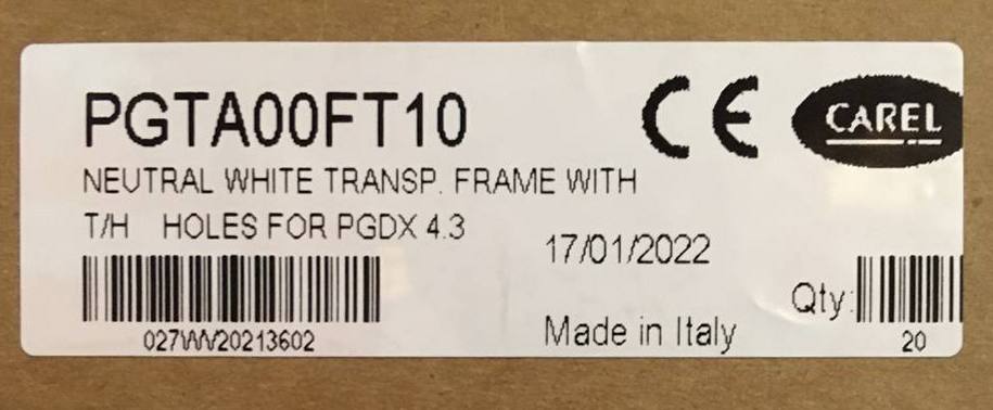 РАМКА БЕЛАЯ ПРОЗРАЧНАЯ С ОТВЕРСТИЯМИ ДЛЯ ДАТЧИКА ТЕМПЕРАТУРЫ И ВЛАЖНОСТИ ДЛЯ CAREL PGDX 4.3", PGTA00FT10