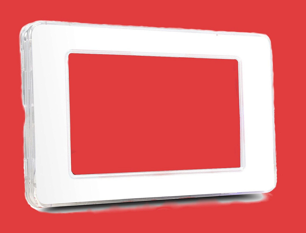 РАМКА НЕЙТРАЛЬНАЯ БЕЛАЯ ПРОЗРАЧНАЯ С ОТВЕРСТИЯМИ ПОД ДАТЧИК ТЕМПЕРАТУРЫ И ВЛАЖНОСТИ ДЛЯ ДИСПЛЕЯ CAREL PGDX 4.3"