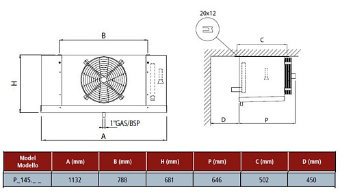 Воздухоохладитель Thermokey Light Cubic 12 кВт, R404a, SC2 (-8/∆8), 1х450мм, PH 145.48 E