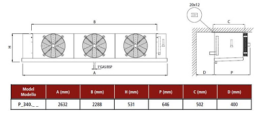 В конструктивном плане данный воздухоохладитель оснащен системой электрооттайки, что облегчает обслуживание и эксплуатацию устройства в условиях низких температур. Шаг ребра теплообменника составляет 4 мм, обеспечивая высокую эффективность теплообмена и надёжность работы в различных температурных режимах. Конструкция предусматривает наличие трёх мощных осевых вентиляторов, способных обеспечить значительное перемещение воздуха, что критично для быстрых циклов охлаждения воздушного пространства внутри камер.