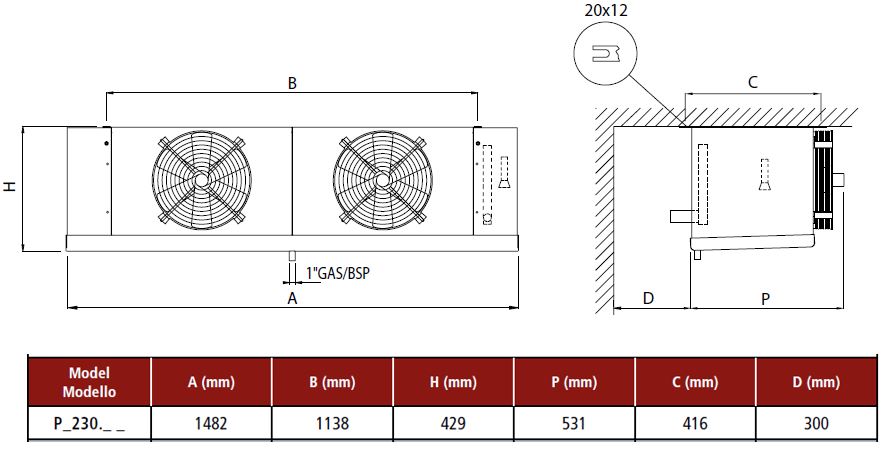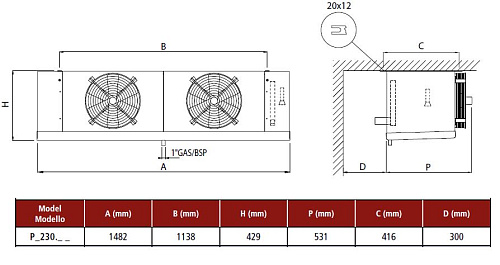 Воздухоохладитель Thermokey Light Cubic 2,4 кВт, R404a, SC3 (-25/∆7), 2х300мм, PL 230.83 E