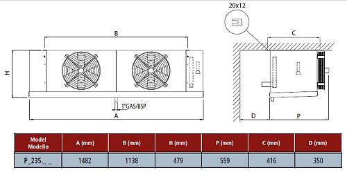 Воздухоохладитель Thermokey Light Cubic 4,2 кВт, R404a, SC3 (-25/∆7), 2х350мм, PL 235.84 E