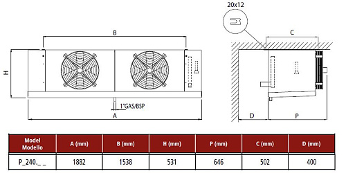 Воздухоохладитель Thermokey Light Cubic PL 240.84 E предназначен для работы в средних холодильных камерах. Холодильная мощность устройства составляет 6 кВт при использовании хладагента R404a и эксплуатационных условиях SC3 (-25/∆7), а также 7,2 кВт при условиях SC2 (-8/dt8). Воздухоохладитель оснащен двумя вентиляторами диаметром 400 мм, что обеспечивает эффективный воздушный поток в объеме 7330 м³/час и выброс струи на расстояние до 15 м.