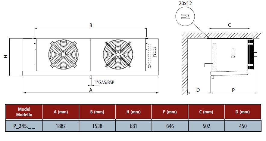 Воздухоохладитель Thermokey Light Cubic 14,5 кВт, R404a, SC3 (-25/∆7), 2х450мм, PL 245.88 E