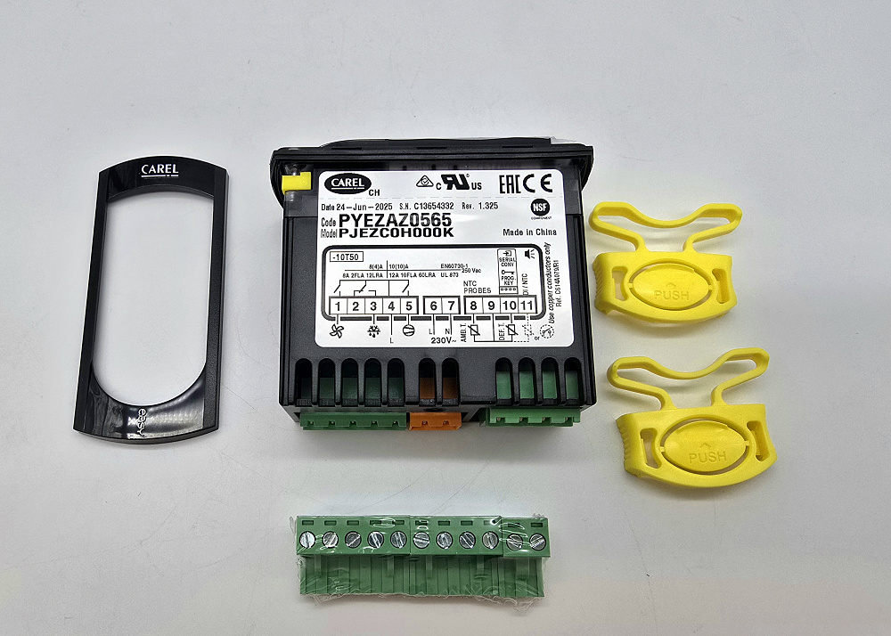 КОНТРОЛЛЕР (электронный термостат) CAREL PJEZC0H000, 3 РЕЛЕ: компрессор (2 HP), оттайка (8 A), вентилятор (8 A), 2 NTC, 1 DIGITAL INP (цифровой вход)