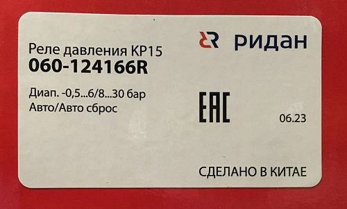 Реле давления сдвоенное Ридан KP-15, 060-124166R, -0,2…7,5 бар / 8...32 бар, автомат/автомат