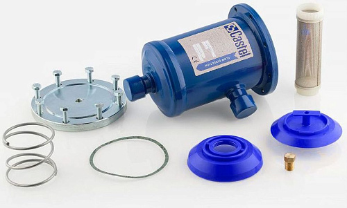 Корпус фильтра-осушителя Castel SF411/M28A предназначен для отделения и удерживания влаги и твердых примесей в холодоснабжающих контурах; конструктивно представляет собой корпус для размещения осушающего наполнителя и рассчитан на встраивание в линию хладагента с использованием 28 мм ODS-соединений.