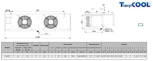 Воздухоохладитель T-COOL TA-42307, 7 мм, 2*300 мм, 4,5/3,6 кВт (SC2/SC3), электрооттайка