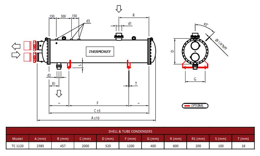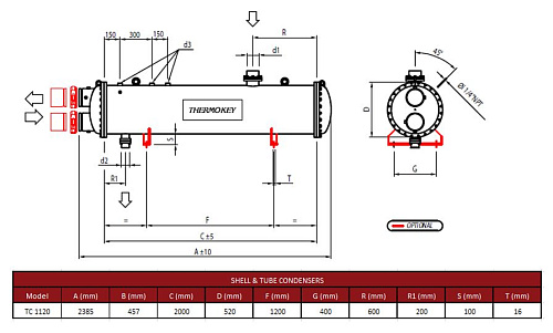 Конденсатор кожухотрубный Thermokey серии «TC» 1120 кВт, R407c, Tk=+33.5 , Tw +15 / +30, TC 1120
