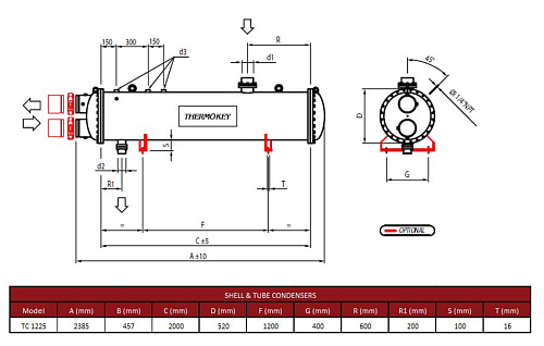 Конденсатор кожухотрубный Thermokey серии «TC» 1225 кВт, R407c, Tk=+33.5 , Tw +15 / +30, TC 1225