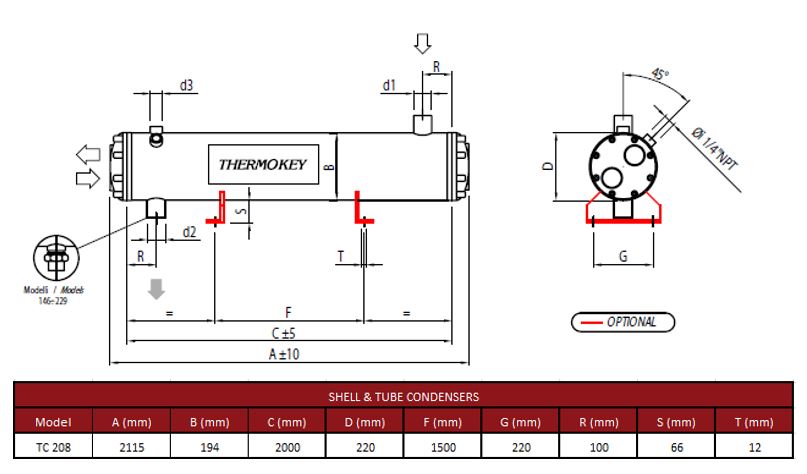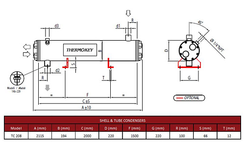 Конденсатор кожухотрубный Thermokey серии «TC» 208 кВт, R407c, Tk=+33.5 , Tw +15 / +30, TC 208