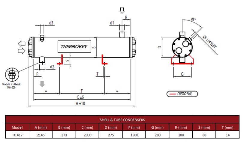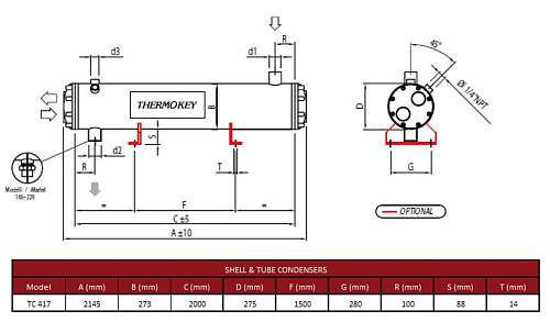 Конденсатор кожухотрубный Thermokey серии «TC» 417 кВт, R407c, Tk=+33.5 , Tw +15 / +30, TC 417
