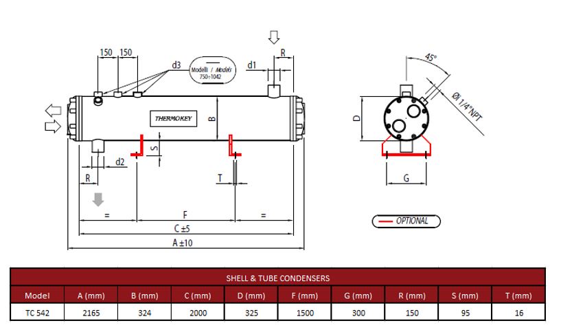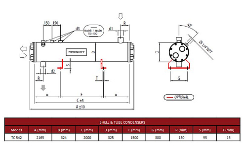 Конденсатор кожухотрубный Thermokey серии «TC» 542 кВт, R407c, Tk=+33.5 , Tw +15 / +30, TC 542