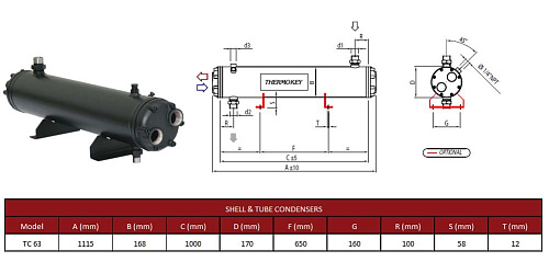 Конденсатор кожухотрубный Thermokey серии «TC» 63 кВт, R407c, Tk=+33.5 , Tw +15 / +30, TC 63