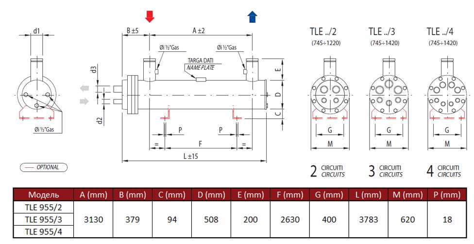 Испаритель кожухотрубный Thermokey серии «TLE» 955 кВт, R134a, T0=+3 , Tw +12 / +9, TLE 955/4