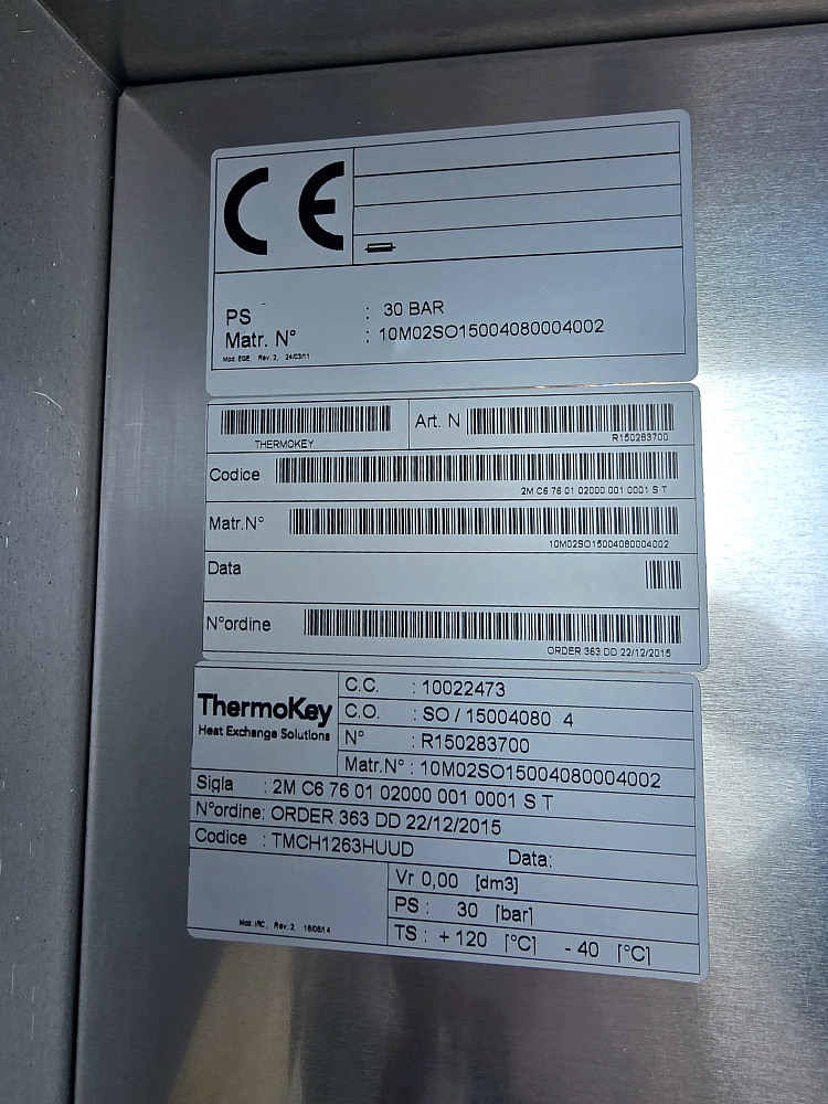 Конденсатор ThermoKey (Италия) 97 кВт, 2х630 мм, R404a, ∆T=15 K, EN 327, БЕЗ ВЕНТИЛЯТОРОВ, TMCH1263HUUDV