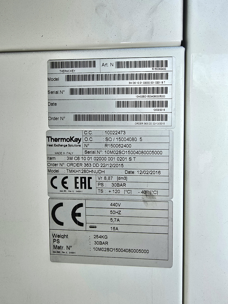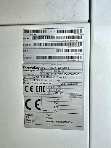 Конденсатор ThermoKey (Италия) 127 кВт, 2х800 мм, R404a, ∆T=15 K, EN 327, БЕЗ ВЕНТИЛЯТОРОВ, TMKH1280HNUDH