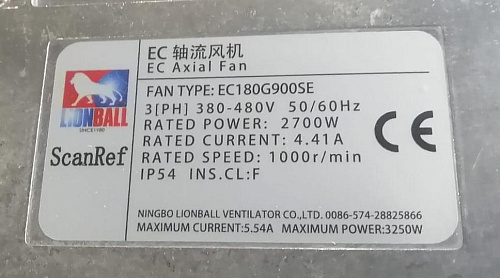 Вентилятор осевой LionBall EC180G900SE, 900 mm, 400V, 2,64A, 1600W