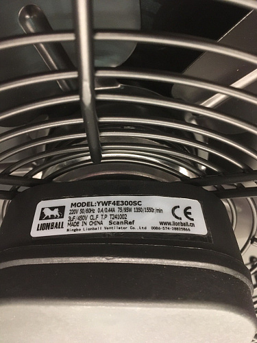 Четырехполюсной электродвигатель, напряжения питания 220В/50Гц/1фаза, диаметр рабочего колеса 300 мм, направление потока воздуха - всасывание.