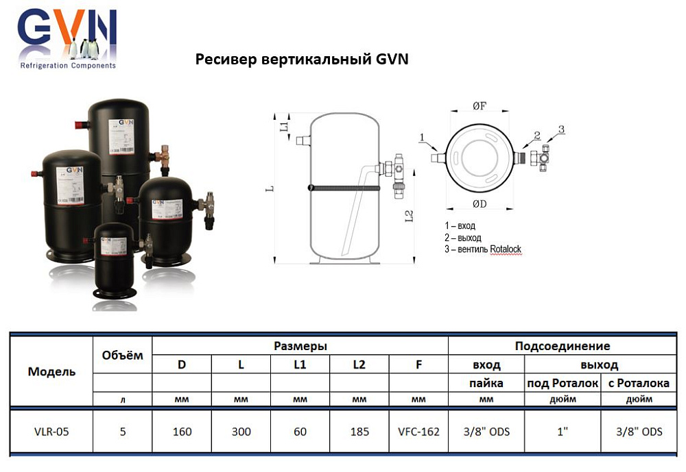 Ресивер — это емкость для хранения жидкого хладагента. Ресивер предназначен для сбора жидкости после конденсатора, создания запаса хладагента в системе и равномерной подачи хладагента в испарители.