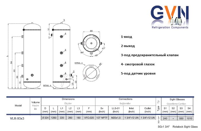 Изготовитель — GVN (Турция); область применения включает промышленные и коммерческие холодильные установки, склады и предприятия пищевой отрасли, где требуется промежуточный резерв хладагента и равномерное распределение жидкости по испарителям. Совместимость с конкретными типами хладагентов и рабочими давлениями определяется проектной документацией и эксплуатационными требованиями системы.