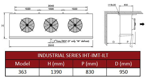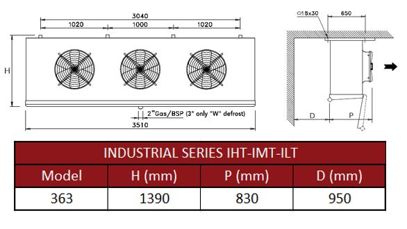 Воздухоохладитель Thermokey Industrial 84 кВт, R404a, SC2 (-8/∆8), 3х630мм, IMT 363.710* E
